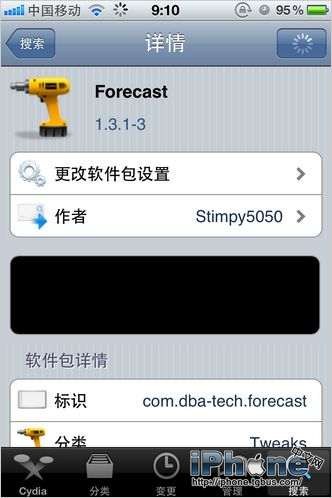 首先我們進入Cydia,然後在最右面的搜索找到Forecast,點擊下載安裝而後注銷