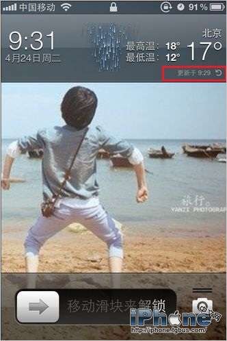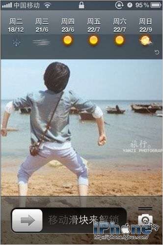 接著我們在解鎖屏幕的時候,就會發現在上面時鐘區域已經多了天氣的顯示