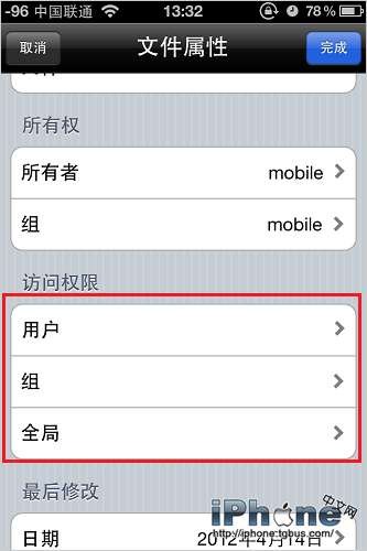到了文件屬性這個界面,看到下面的訪問權限,我們要做的就是進入這三個選項裡,把所有勾選都去掉。