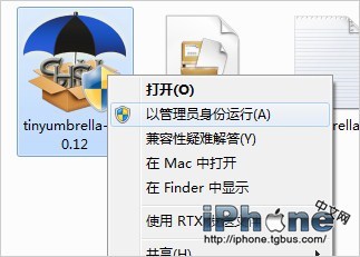 在電腦中,右鍵單擊TinyUmbrella小雨傘圖標,選擇以管理員身份運行