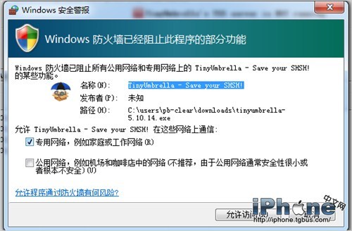 允許TinyUmbrella小雨傘通過Windows系統防火牆。