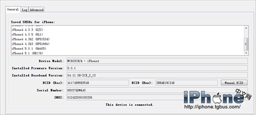 保存完成後,右下方的Saved SHSHs for iPhone列表框裡將顯示獲取到的SHSH版本。