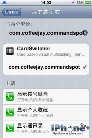 安裝完畢後注銷,然後進入Activator設置中,小編這裡以從屏幕上右啟動為例。
