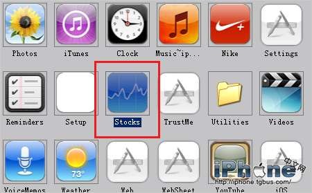 用ifunbox打開/Applications,而後把裡面的stocks.app刪除。