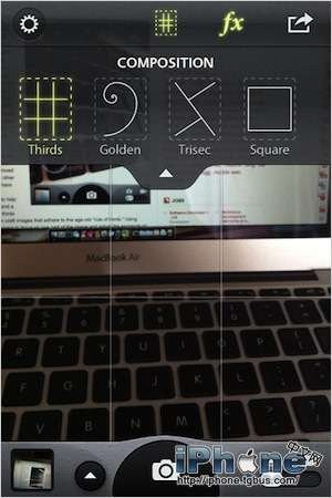 為了讓用戶拍下好照片,Camera Awesome 提供了很多輔助手段,比如顯示一個“地平線”,讓人能夠把握照片的平衡;顯示黃金比例曲線,讓人在拍照的時候注意布局等等。