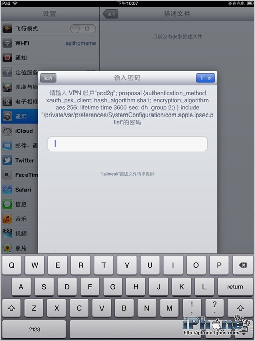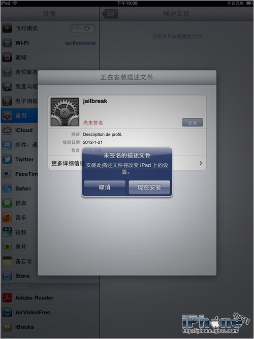 iPad2會彈出“安裝描述文件”安裝提示,點擊安裝。