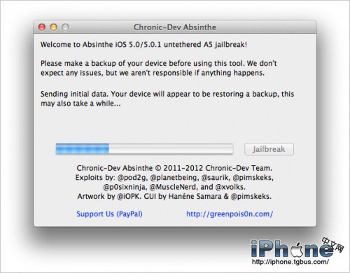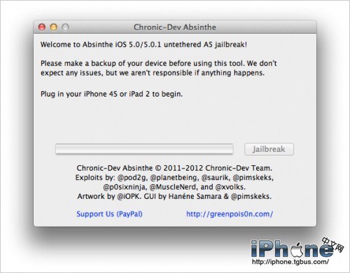 iPad2 iOS5.0.1完美越獄,需要使用最新發布的Absinthe 0.1.2-1越獄工具。