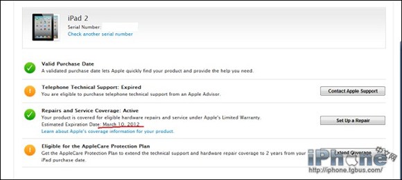 或者中文查詢地址:http://iphone.tgbus.com/sn/baoxiuchaxun.shtml
