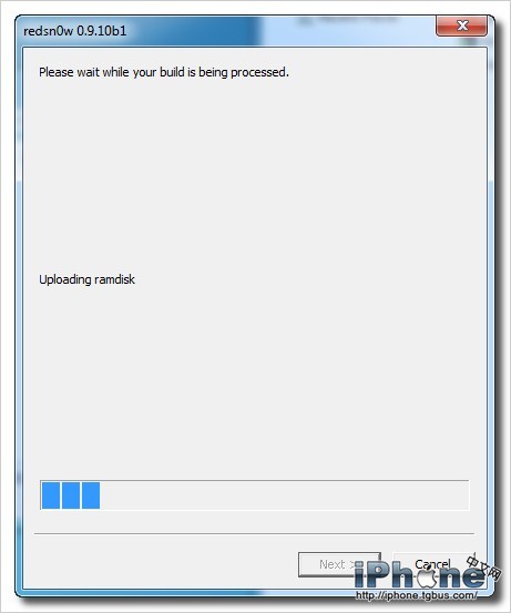 RedSn0w將重啟機器,並自動進行越獄工作,耐心等待它完成。