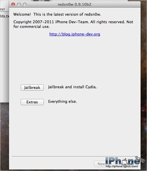 1、打開紅雪Redsn0w,選擇“Extras”