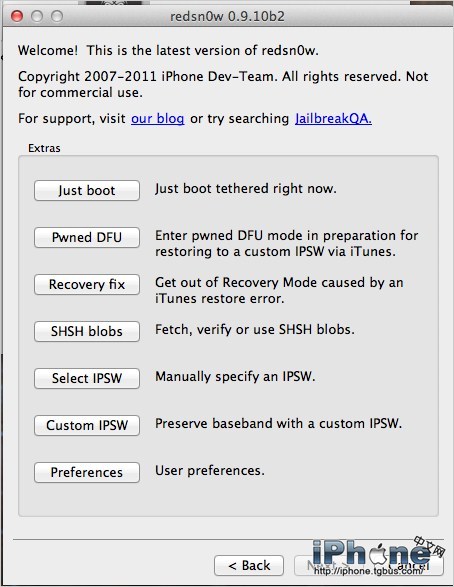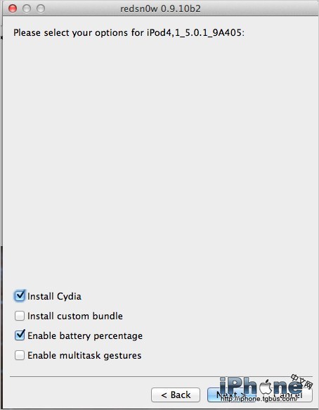 5、點擊Back,退回Redsn0w首頁