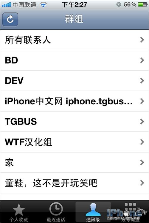 分組完成後,相應改變會上傳到iCloud並同步到iPhone4S或其它開啟iCloud並設置了同步通訊錄的設備上。