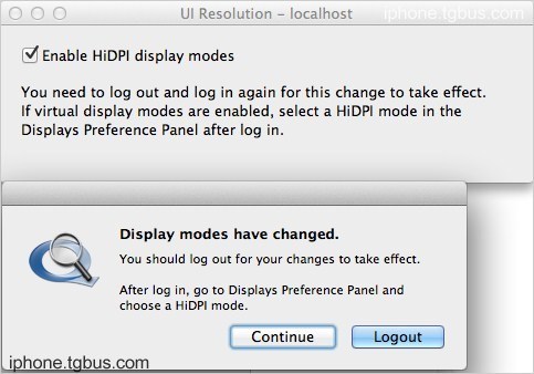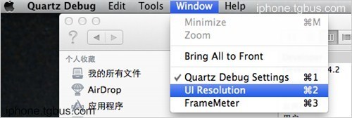 打開Quartz Debug頂部工具欄的Windows菜單下的UI Resolution功能,在彈出的對話框中,打開“Enable HiDPI display modes”模式。