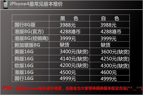 一、iPhone4常見版本報價