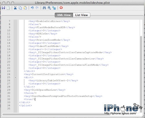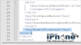 在iBackupBot打開的文本編輯器中,將文本拉動到最下方,在最後一個<true/>標簽後面,加入下面兩行代碼: