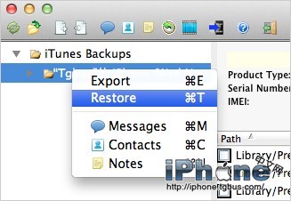 在設備備份上,點擊鼠標右鍵,選擇“Restore”恢復備份。