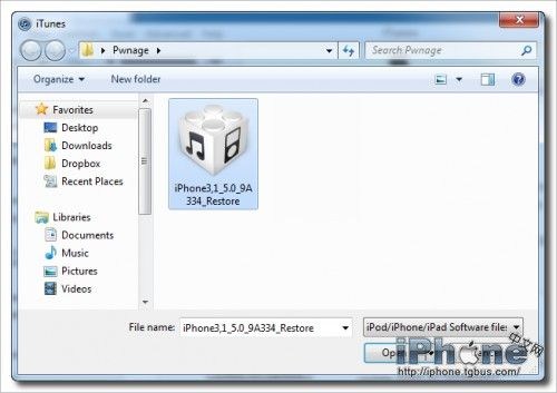 第三步:打開Redsn0w 0.9.9b7,點擊 Extras(額外)選項,然後選擇IPSW(固件)選項,然後選擇你電腦裡面的 iOS 5 IPSW(固件)文件(注意是5.0)。