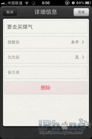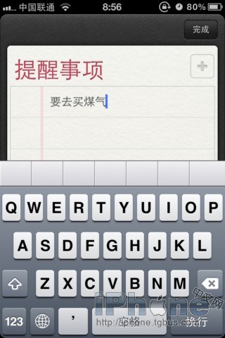 我們按+號添加一個“提醒事項”:要去買煤氣