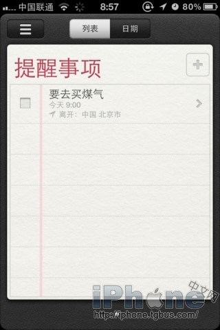 蘋果這次發布的iOS 5把提醒功能單獨提了出來成為一個應用放在了桌面上,想必對越來越繁忙的人們來說,提醒功能變得很重要使用也更頻繁,所以我們對“提醒事項”進行一番研究,發現其實提醒是可以很智能的;iOS5提醒事項不僅可以按時間來提醒你,還可以根據你的位置變化來提醒你該干什麼了!