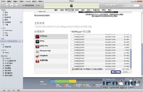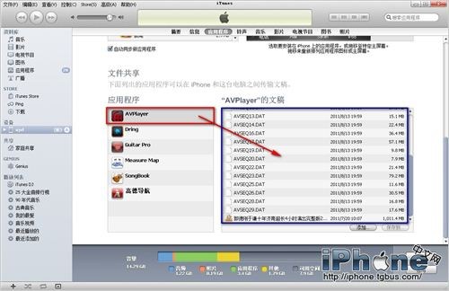 2.接下來是導入視頻,進入iTunes並連接設備(iPhone或iPad),在應用程序一項的最下端,有一個文件共享的功能,可以在這裡輕松的加入你上傳的視頻。下面看圖文演示: