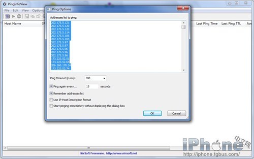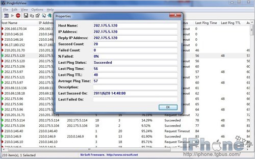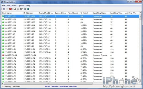 運行軟件後,在彈出的頁面中直接點OK。軟件將自動開始測試你的機器,與蘋果服務器的連接情況。在測試完成後,將程序下方的滾動條拉到右端,找到Average Ping Time列,在列名上點擊一下,讓它變成從小到大排序。這裡面除去沒有數值的無法連接服務器,最小數值的那個,就是與你機器連接情況最優級的服務器地址。