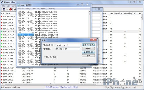 PC機下載這裡的》 hosts.rar 《文件,解壓後用記事本打開hosts文件。將裡面預置的服務器地址,使用替換功能,全部替換為剛剛軟件得到的最優服務器地址。