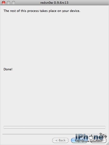搞定,等待iPhone端程序運行完畢,現在可以斷開數據線但不要操作iPhone。