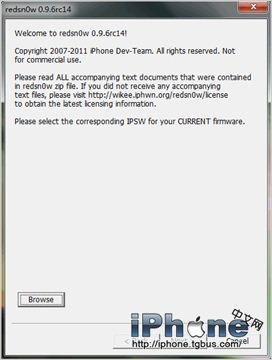 4.點擊Browse選擇官方iOS 4.3.3,RedSn0w將識別iOS 4.3.3 IPSW 文件,識別成功後點擊Next。