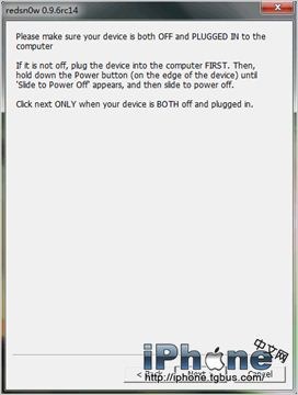 6.確認iPhone, iPad 或 iPod Touch已關閉並經過USB數據線連接在電腦上,點擊Next。