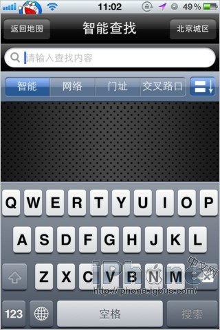 第一次使用我們要查找我們要去的目的地,“智能查找”支持中文或者拼音“模糊查詢”,如果在本地數據庫裡查不到也可以用“網絡”數據庫試試,還可以通過“門址”門牌號查詢,或通過“交叉路口”名稱查詢。