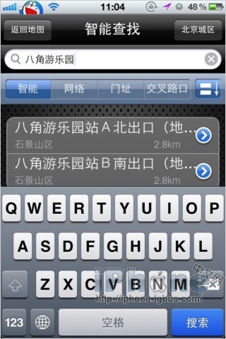 現在我們嘗試在“北京”區域查找“八角游樂園”這個目的地。