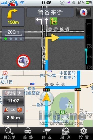 作為車載導航這部分功能,《高德導航》做的確實很不錯,新版本語音提示增加了通過“紅綠燈”提醒,顯示上增加了路口行車道提醒等功能都是非常實用的。