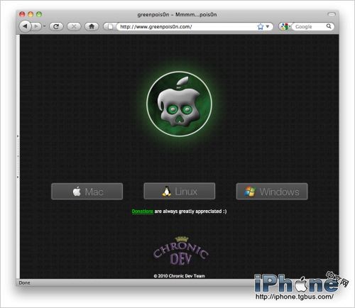 1.打開本站下載或者綠毒官方網站,下載Mac或Windows版綠毒Greenpois0n RC5。
