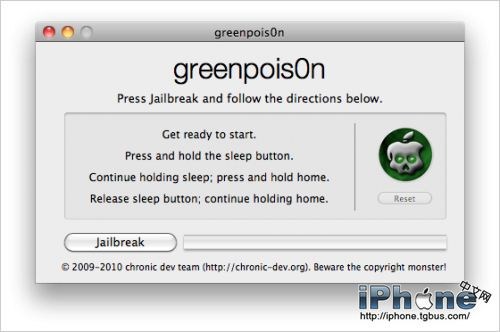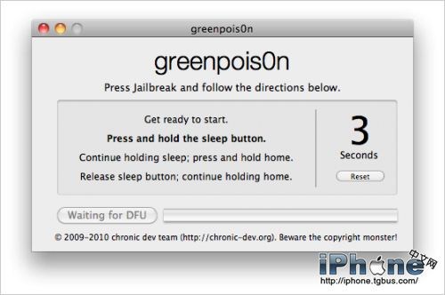 完美越獄iPhone3GS和iPhone4的4.2.1固件在有了綠毒Greenpois0n RC5之後就再也不是問題了,目前Windows和Mac版已出,Linux版還在路上。不過我們已經可以開始了,雖然還有一些問題,但是比iPhone Dev Team的Redsn0w 0.9.7b6要給力很多。本文最後附越獄視頻,但由於語言是英文,建議沒有英文基礎的朋友先看完教程再看視頻。