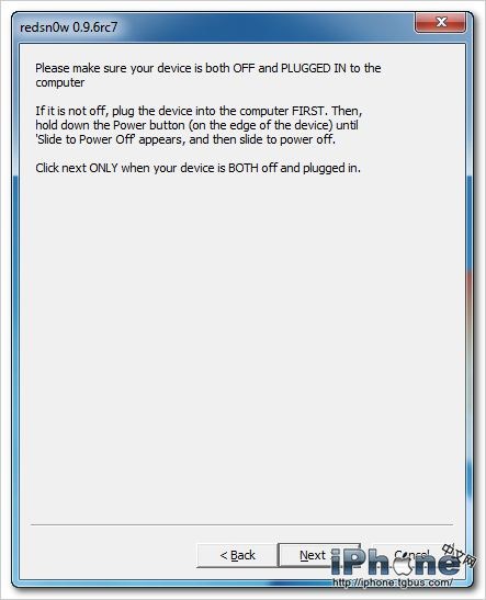 不完美越獄iPhone在Windows下的快速輔助啟動跟把大象裝冰箱一樣簡單。正面請看我們在Windows下使用RedSn0w 0.9.6RC7在Windows下快速啟動不完美越獄的iPhone。