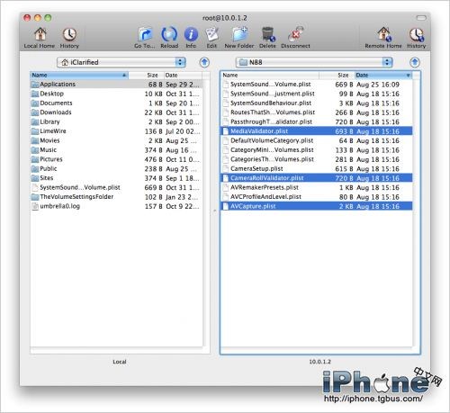 7. 備份/System/Library/PrivateFrameworks/Celestial.framework/N88/目錄下的AVCapture.plist, CameraRollValidator.plist和MediaValidator.plist文件並用附件中的同名文件替換。