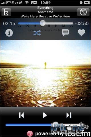 ShareTunes基於Last.fm的iPhone軟件,有獨一無二的Scrobbling功能,抓取iOS系統中iPod正在播放中的音樂信息和地理位置並隨時分享到Last.fm專頁、Facebook和Twitter。不僅如此,它還可以查看歌曲信息及樂隊信息並以更好的方式推薦給你音樂和專輯。(注:此方式後來被豆瓣電台借鑒並不完美移植)。