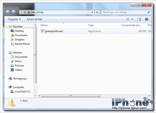 先從上面的下載鏈接下載綠毒GreenPois0n RC3越獄軟件