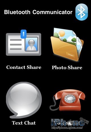 打開Bluetooth Communicator,iPhone和iPad的主界面是基本相同的,都有四個主要的功能。