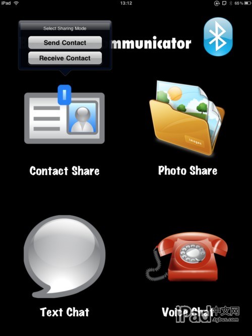 看到地鐵裡的美眉(帥哥)想搭讪卻羞於開口?看這裡!如果你們恰好都有使用iOS的設備,並且都裝有Bluetooth Communicator,並且也都處於打開狀態的話,你的機會就來了!Bluetooth Communicator - All in one是一款多合一藍牙應用,支持藍牙聯系人共享,圖片共享,文字聊天,語音聊天,僅支持iPhone/iPad之間通信。支持iPad和iPhone、iPod touch之間通話、文本聊天、通訊錄共享和照片共享。