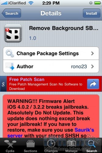 這是SBSettings最新功能開關,能夠關閉所有後台運行軟件和進程, 是由rono23制作的,到cydia裡面搜索Remove Background SBSettings(BigBoss Cydia Repository),或者直接去論壇下載附件安裝。 這個開關只是快速關閉所有駐留在後台的軟件,並不是禁用後台,4.0以上固件專用。