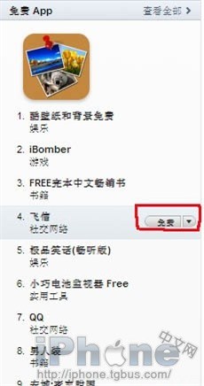 2、在iTunes Store的軟件商店界面的右側,找到免費App,然後隨便找一個,點擊右側的“免費”按鈕。