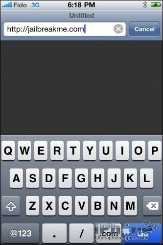 點擊iPhone 4 Safari的地址欄並在其中輸入http://jailbreakme.com,然後點擊完成按鈕。