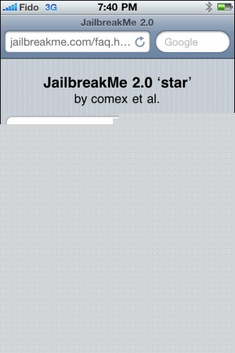 見到iPhone 4滑動條顯示的Slide to Jailbreak字樣後,拉開滑動條開始越獄,如果卡在紫色屏幕,可以使用http://jailbreakme.modmyi.com代替,如果國內網絡被封鎖,請使用VPN(點擊有教程)或代理訪問。