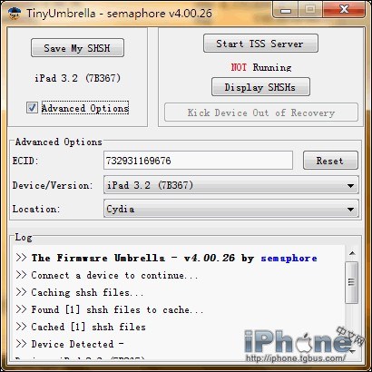 4.Advanced Options勾選後會出現ECID、Device/Version和Location三個選項:第一個ECID處可以手動輸入ECID碼;第二Device/Version用來強制選擇型號和版本;第三個Location是選擇SHSH的備份地址,這個要重點介紹一下,選擇Apple是從蘋果備份、選擇Cydia則是在Cydia中備份、選擇Local是備份到本地。沒有在本地看到SHSH文件的用戶不用擔心,默認的備份使用Cydia服務器。