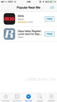 這是iOS 7的App Store中新增的一個功能,旨在為用戶提供更多基於位置的應用服務。比如,我現在實際上是在美國加利福尼亞州的Napa旅行,只要打開App Store選擇“Near me”選項,就可以看到與當地有關的App,非常適合旅行時使用,十分方便。只不過,在國外旅行時,中國的Apple ID無法搜索到任何附件的應用內容,還需要更換為當地的Apple ID才行。