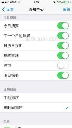 iOS 7中針對通知中心進行了強化,增加了全新的“今日”欄目,讓你可以一目了然地了解到當天的所有事件。事實上,你也可以對其進行定制,只要進入設置-通知中心,就可以看到一些可定制項目,還擁有手動排序和按時間排序兩種視圖。