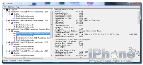 在左邊的欄目裡找Apple Recovery (iBoot) device,然後在右邊欄目裡就能找到 ECID碼了。