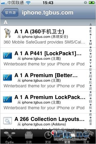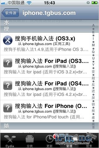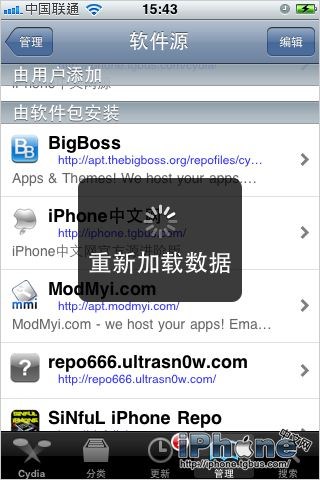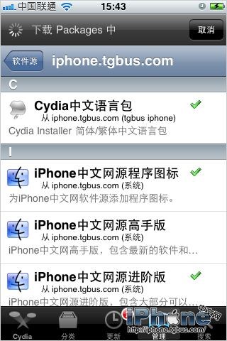 打開後添加iPhone中文網的軟件源地址http://iphone.tgbus.com/cydia/