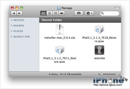 1.在桌面上創建一個名為Pwnage的文件夾。然後從這裡將RedSn0w下載並提取 redsn0w 程序到Pwnage文件夾,同時將3.1.2 和 3.1.3固件也下載到這個文件夾內。